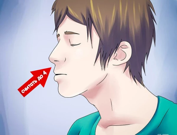 Нужно постараться расслабиться, сделать вдох длительностью 4 секунды затем задержать дыхание на 7 секунд и сделать долгий выдох на 8 секунд.